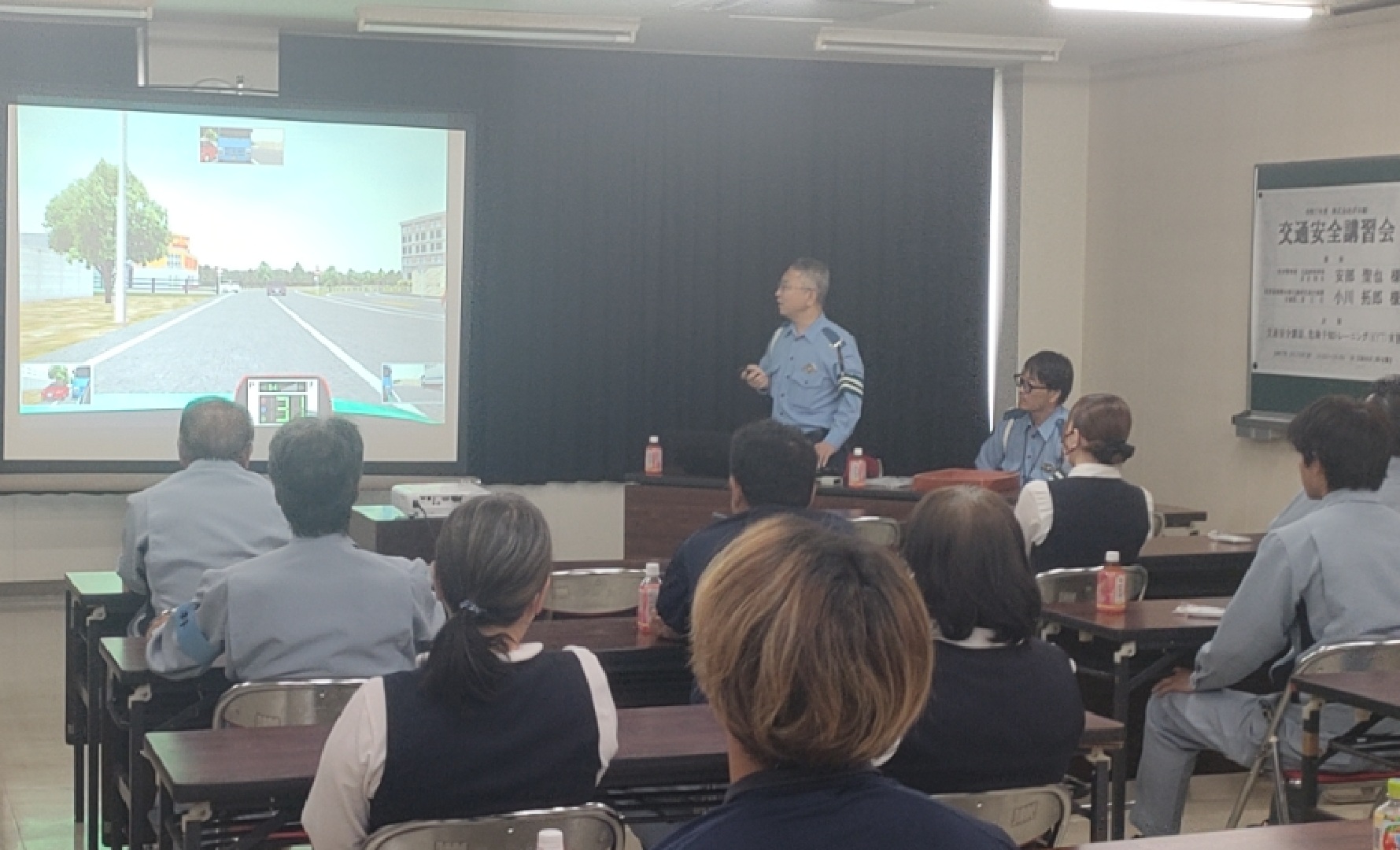 そのほか交通事故の現況やドライブレコーダーに記録された実際にあった交通事故の映像を見せていただき、改めて事故の恐ろしさと悲惨さを認識し、交通事故を未然に防ぐために、予測運転と状況判断の大切さを学びました。